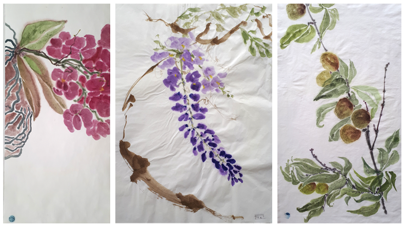 Découverte des bases de la calligraphie pour une meilleure compréhension de la peinture asiatique. Etude de la nature avec différentes techniques picturales : le trait, la tâche, les valeurs de l’encre. Création de poèmes japonais, Haïku, et sa mise en image à l’encre de chine (noire et couleur).